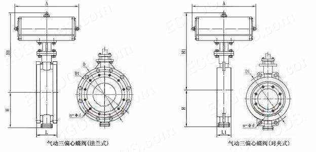 气动三偏心蝶阀 主要外形尺寸