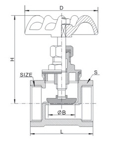 DN | SIZE | L | H | D | S | ∅B |